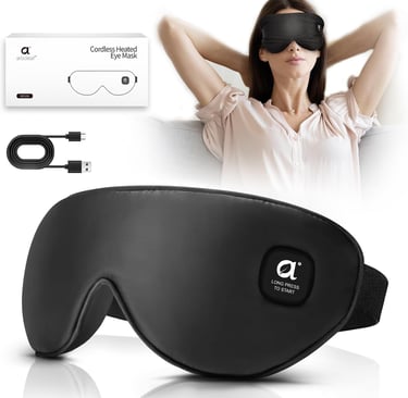Heated Eye Mask for Dry Eyes, arboleaf Eye Mask for Sleeping Cordless Rechargeable, Blackout Sleep Eye Heat Mask, Temperature Control, Washable Cover & Travel, Gifts for Women Men, 1000mAh Battery