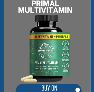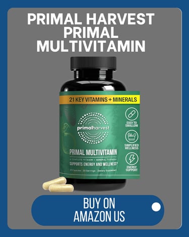 Primal Harvest Primal Multivitamin - Daily Multi-Vitamin Supplement with 21 Essential Vitamins & Minerals for Women & Men - Vitamin A, C, D, E, B12, B6, Biotin, Folic Acid, Zinc, Copper & Selenium